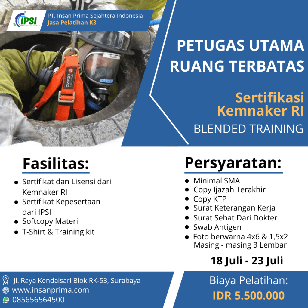 Berikut adalah jadwal kegiatan Petugas K3 Utama Ruang Terbatas Sertifikasi Kemnaker RI yang kami selenggarakan.