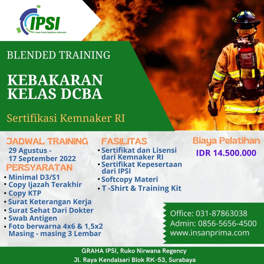 Berikut adalah jadwal kegiatan Pelatihan Petugas Kebakaran Kelas DCBA Sertifikasi Kemnaker RI yang kami selenggarakan.