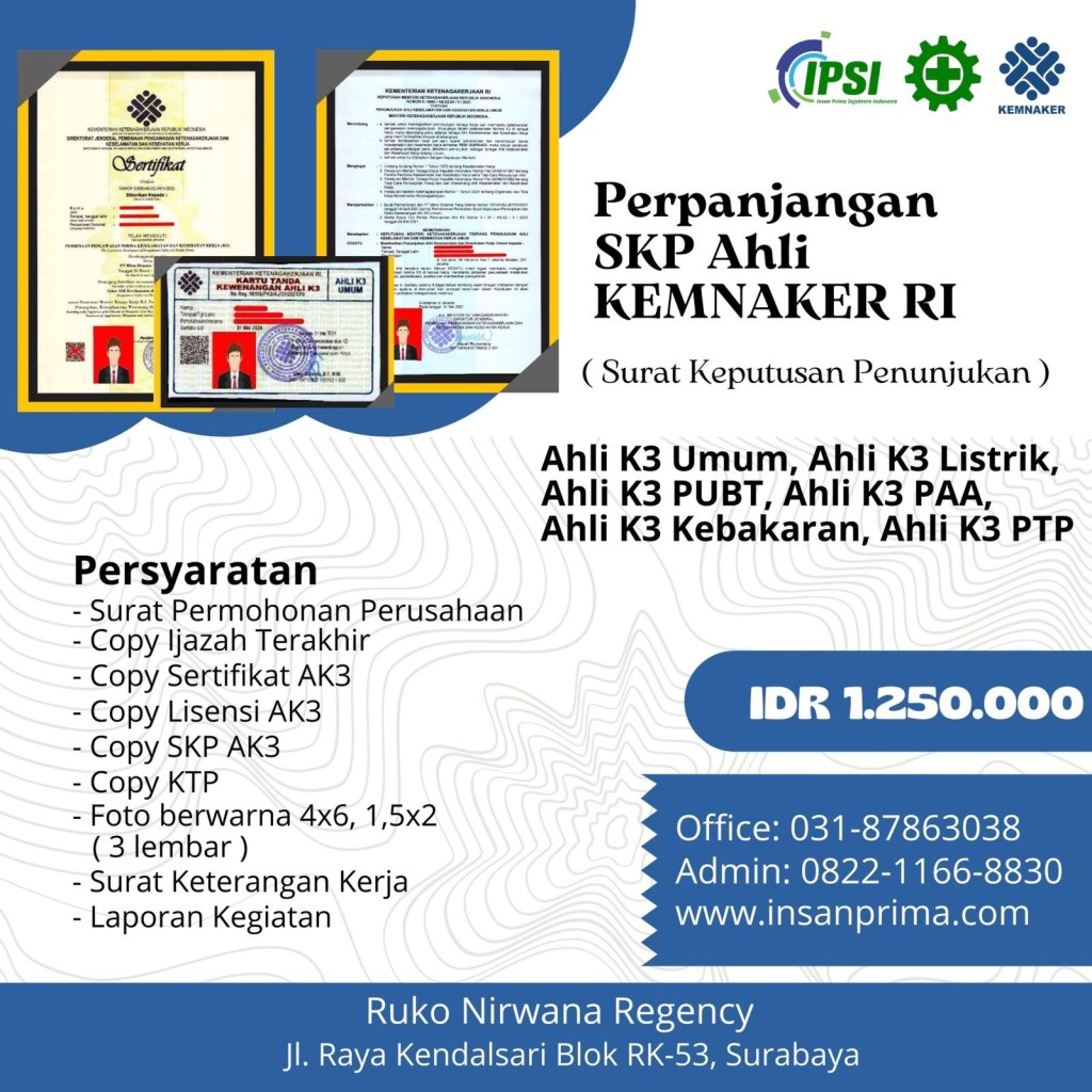 Pelatihan K3 Surabaya, Pelatihan K3 Online, Pelatihan K3 Kemnaker, Pelatihan K3, Pelatihan K3 Umum, Pembinaan K3, Training K3 Murah, Pelatihan Audit K3, Pelatihan Ahli Muda K3 Konstruksi, Sertifikasi Kemnaker RI