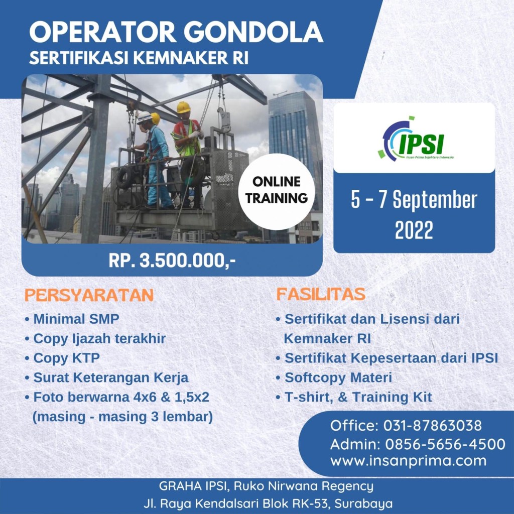 pelatihank3#pelatihank3umum#pelatihank3surabaya#TERMURAH, WA (0856-5656-4500), PELATIHAN K3 OPERATOR GONDOLA SURABAYA
