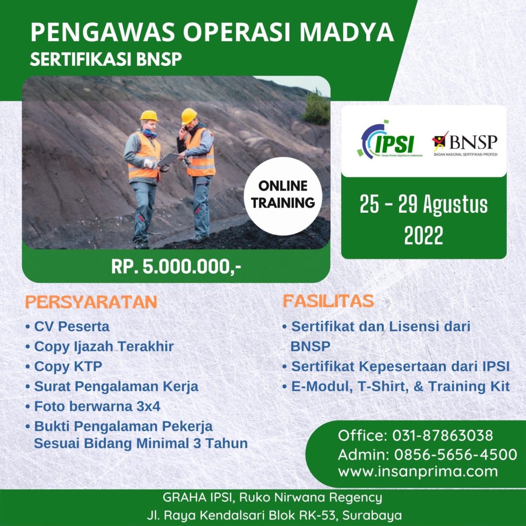 Berikut adalah jadwal kegiatan Pengawas Operasi Madya Sertifikasi Kemnaker RI yang kami selenggarakan.
