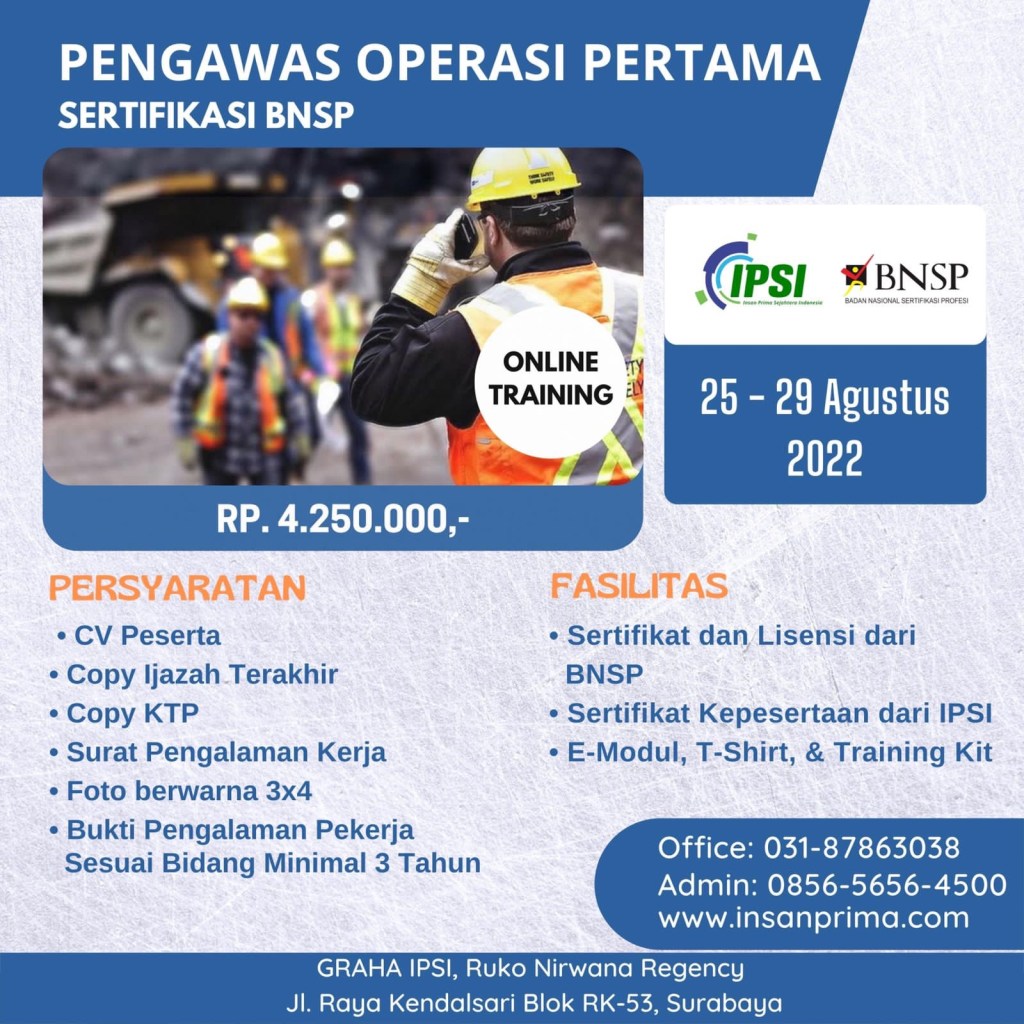 Berikut adalah jadwal kegiatan K3 Pelatihan Pengawas Operasi pertama (POP) Sertifikasi BNSP yang kami selenggarakan.